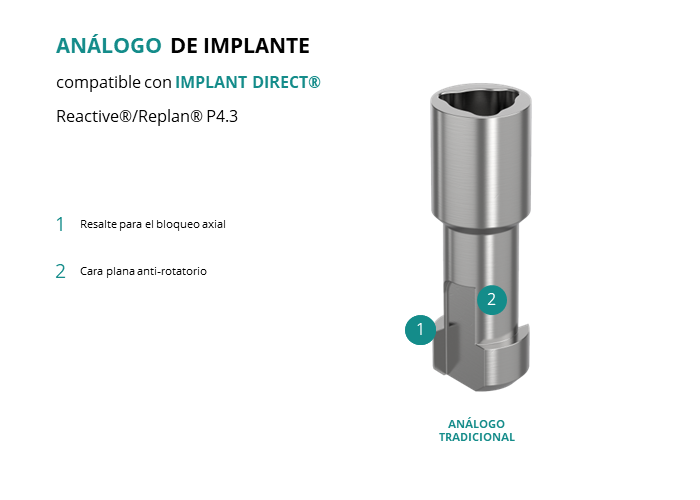 Análogo compatible con Implant Direct® Reactive®/Replan® P4.3