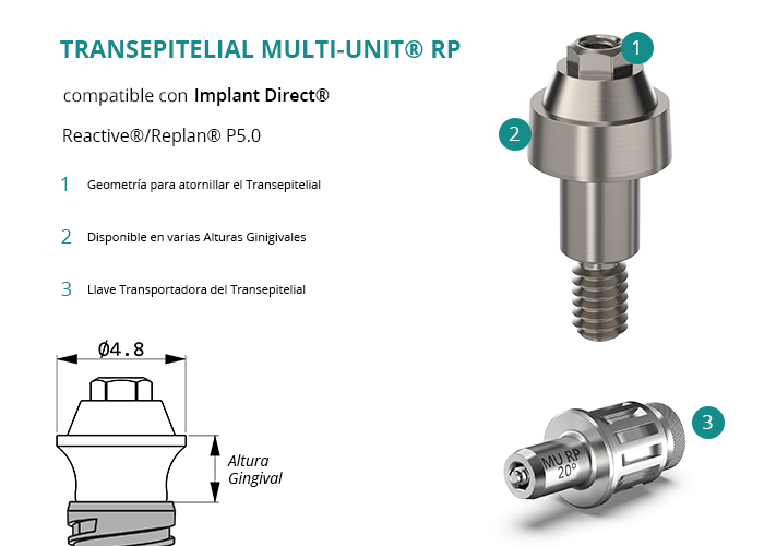 Transepitelial Multi-Unit® RP compatible con Implant Direct® Reactive®/Replan® P5.0