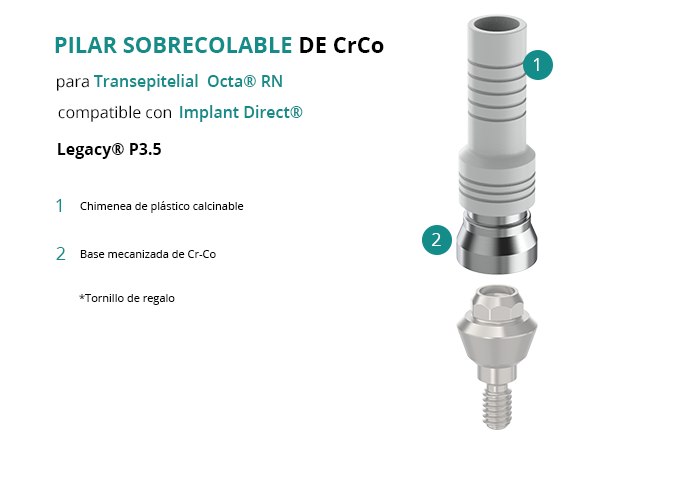 Pilar Sobrecolable de CrCo para Transepitelial Octa® RN compatible con Implant Direct® Legacy® P3.5