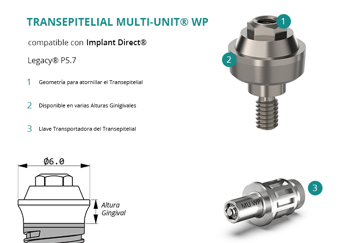 Transepitelial Multi-Unit® WP compatible con Implant Direct® Legacy® P5.7