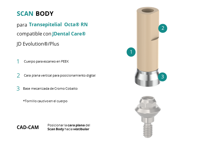 Scan Body para Transepitelial Octa® RN compatible con JDental Care® JD Evolution®/Plus