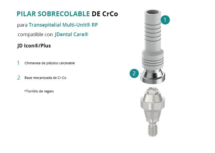 Pilar Sobrecolable de CrCo para Transepitelial Multi-Unit® RP compatible con JDental Care® JD Icon®/Plus