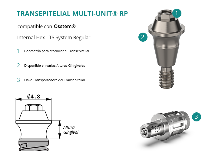 Transepitelial Multi-Unit® RP compatible con Osstem® Internal Hex - TS System Regular
