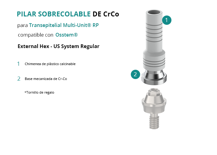 Pilar Sobrecolable de CrCo para Transepitelial Multi-Unit® RP compatible con Osstem® External Hex - US System Regular