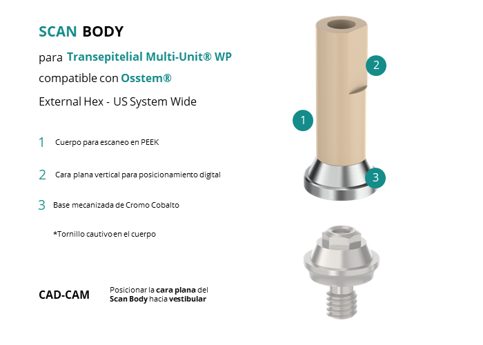 Scan Body para Transepitelial Multi-Unit® WP compatible con Osstem® External Hex - US System Wide