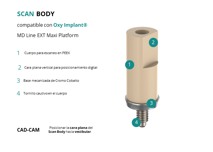 Scan Body compatible con Oxy Implant® MD Line EXT Maxi Platform