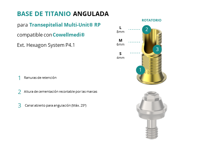 Base de Titanio Angulada para Transepitelial Multi-Unit® RP compatible con Cowellmedi® Ext. Hexagon System P4.1