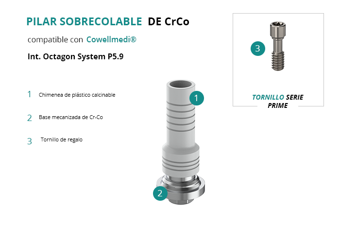 Pilar Sobrecolable de CrCo compatible con Cowellmedi® Int. Octagon System P5.9