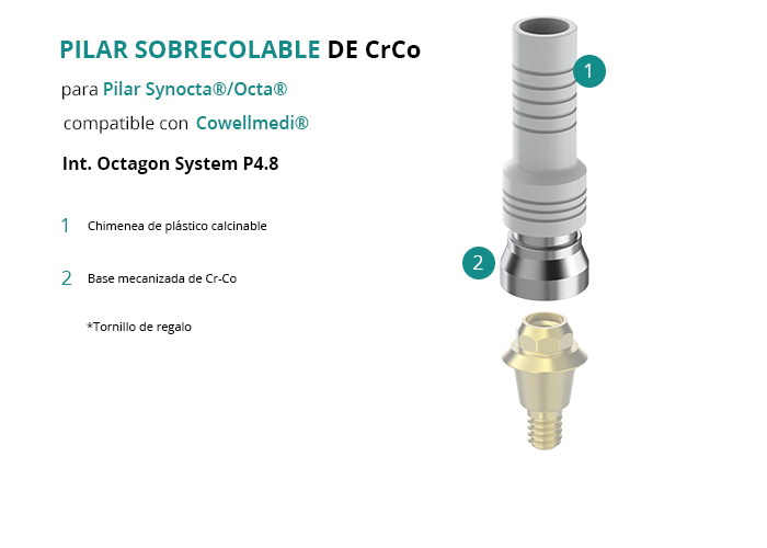 Pilar Sobrecolable de CrCo para Pilar Synocta®/Octa® compatible con Cowellmedi® Int. Octagon System P4.8