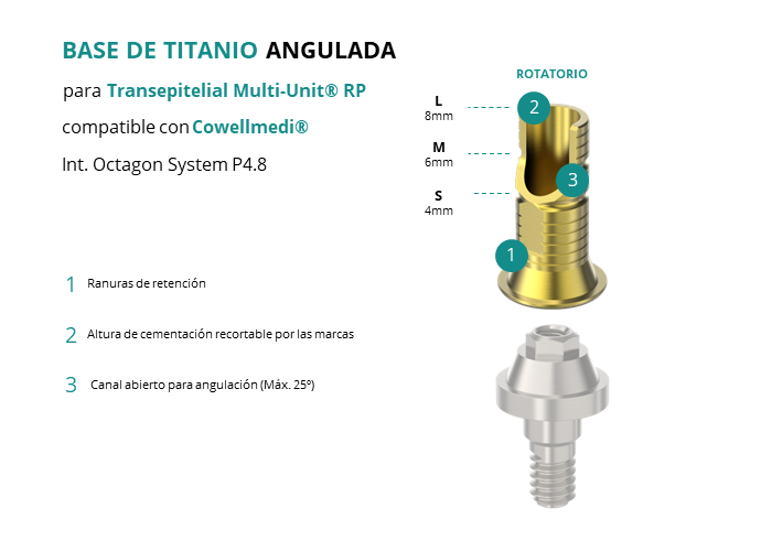 Base de Titanio Angulada para Transepitelial Multi-Unit® RP compatible con Cowellmedi® Int. Octagon System P4.8