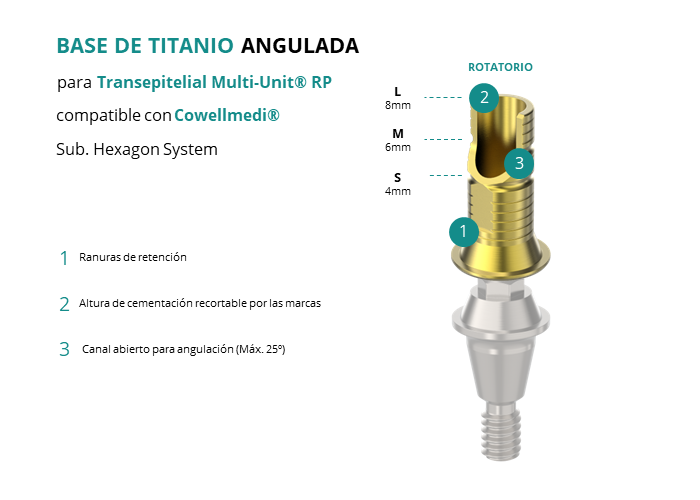 Base de Titanio Angulada para Transepitelial Multi-Unit® RP compatible con Cowellmedi® Sub. Hexagon System