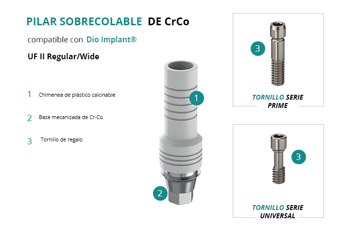 Pilar Sobrecolable de CrCo compatible con Dio Implant® UF II Regular/Wide