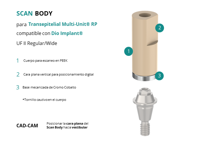 Scan Body para Transepitelial Multi-Unit® RP compatible con Dio Implant® UF II Regular/Wide