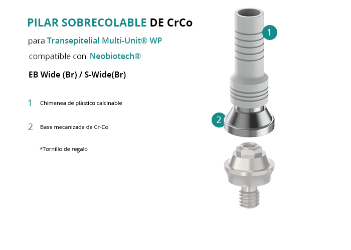 Pilar Sobrecolable de CrCo para Transepitelial Multi-Unit® WP compatible con Neobiotech® EB Wide (Br) / S-Wide(Br)
