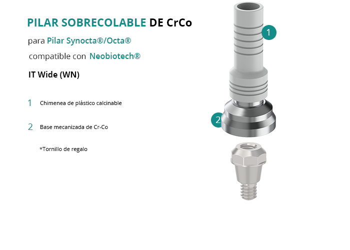 Pilar Sobrecolable de CrCo para Pilar Synocta®/Octa® compatible con Neobiotech® IT Wide (WN)