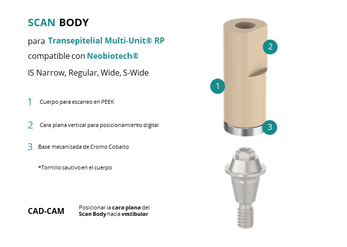 Scan Body para Transepitelial Multi-Unit® RP compatible con Neobiotech® IS Narrow, Regular, Wide, S-Wide