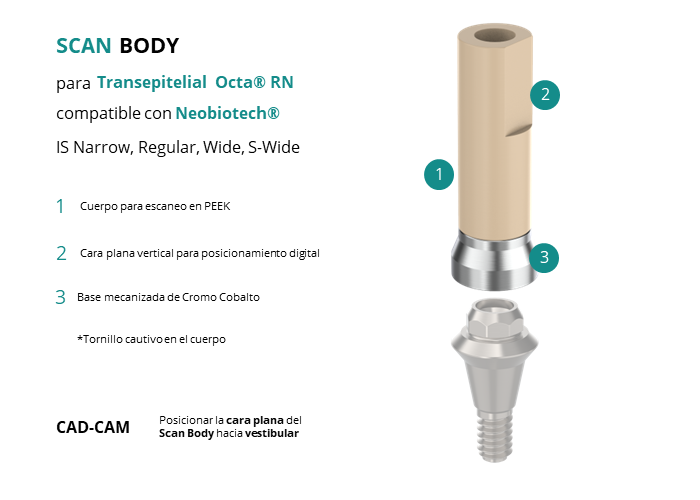 Scan Body para Transepitelial Octa® RN compatible con Neobiotech® IS Narrow, Regular, Wide, S-Wide