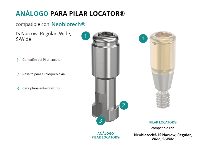 Análogo para Pilar Locator® Compatible con Neobiotech® IS Narrow, Regular, Wide, S-Wide