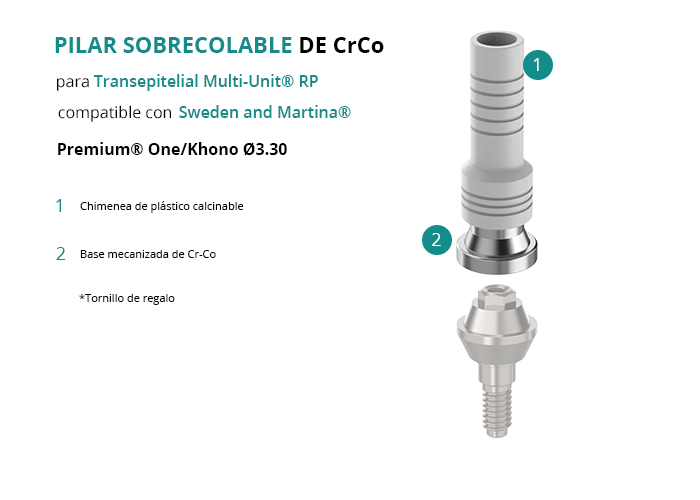 Pilar Sobrecolable de CrCo para Transepitelial Multi-Unit® RP compatible con Sweden and Martina® Premium® One/Khono Ø3.30