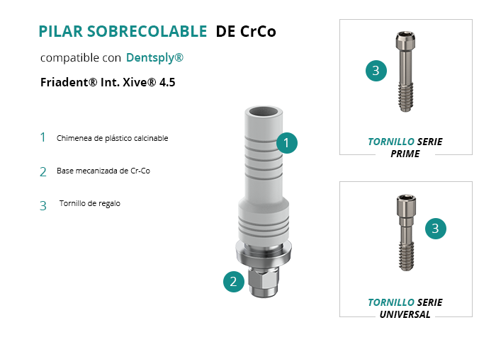 Pilar Sobrecolable de CrCo compatible con Dentsply® Friadent® Int. Xive® 4.5