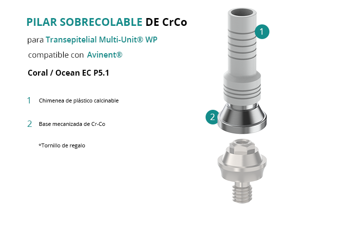 Pilar Sobrecolable de CrCo para Transepitelial Multi-Unit® WP compatible con Avinent® Coral / Ocean EC P5.1
