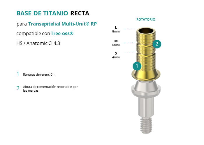 Base de Titanio Recta para Transepitelial Multi-Unit® RP compatible con Tree-oss® HS / Anatomic CI 4.3