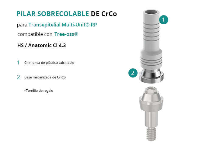 Pilar Sobrecolable de CrCo para Transepitelial Multi-Unit® RP compatible con Tree-oss® HS / Anatomic CI 4.3