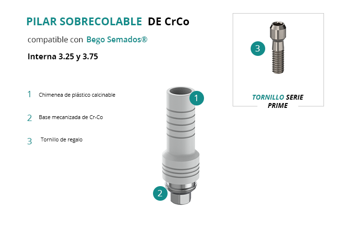 Pilar Sobrecolable de CrCo compatible con Bego Semados® Interna 3.25 y 3.75