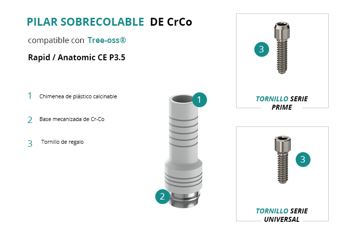 Pilar Sobrecolable de CrCo compatible con Tree-oss® Rapid / Anatomic CE P3.5