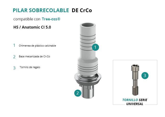 Pilar Sobrecolable de CrCo compatible con Tree-oss® HS / Anatomic CI 5.0