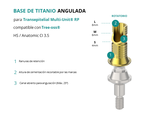 Base de Titanio Angulada para Transepitelial Multi-Unit® RP compatible con Tree-oss® HS / Anatomic CI 3.5