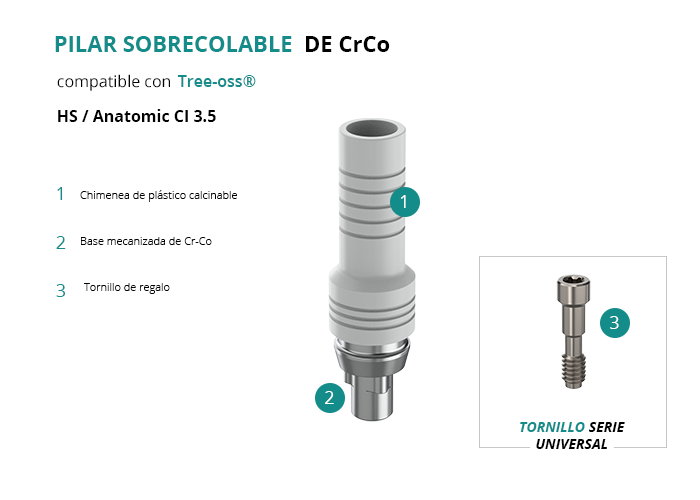 Pilar Sobrecolable de CrCo compatible con Tree-oss® HS / Anatomic CI 3.5