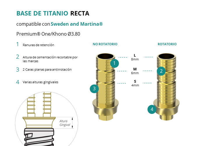 Base de Titanio Recta compatible con Sweden and Martina® Premium® One/Khono Ø3.80