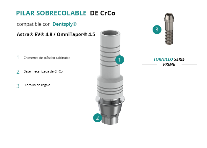 Pilar Sobrecolable de CrCo compatible con Dentsply® Astra® EV® 4.8 / OmniTaper® 4.5