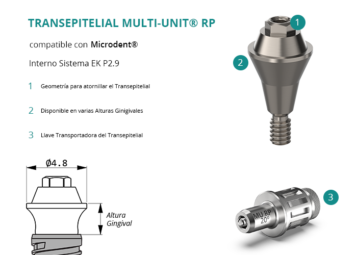Transepitelial Multi-Unit® RP compatible con Microdent® Interno Sistema EK P2.9