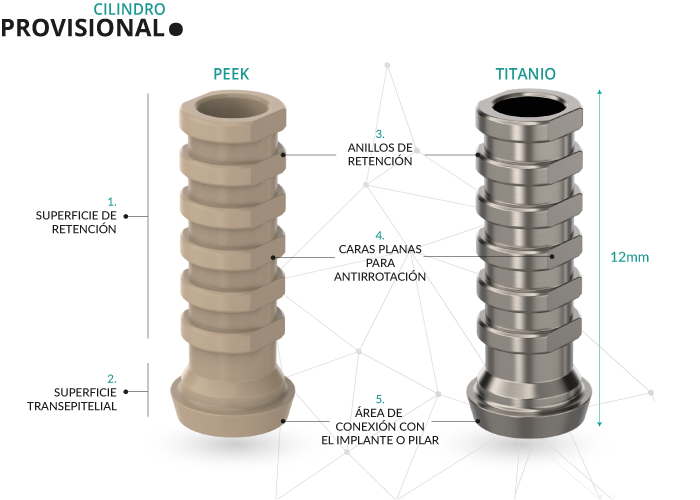 El Cilindro Provisional de Gt-Medical está fabricado en Titanio de grado 5 con acabado micro pulido a espejo para evitar la adhesión de placa bacteriana.