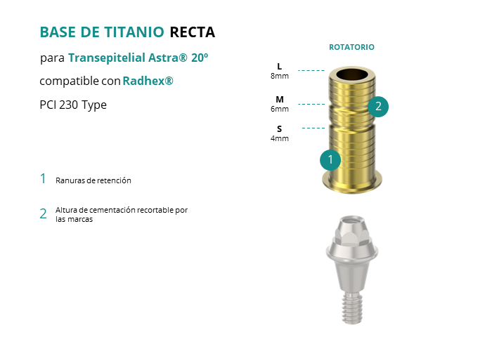 Base de Titanio Recta para Transepitelial Astra® 20º compatible con Radhex® PCI 230 Type