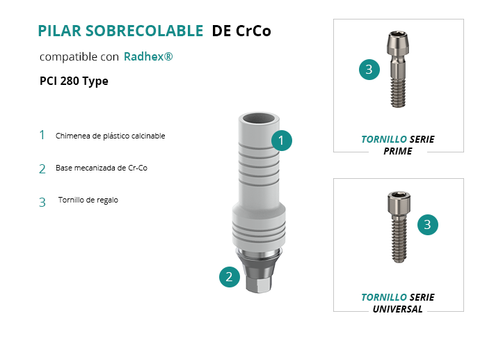 Pilar Sobrecolable de CrCo compatible con Radhex® PCI 280 Type